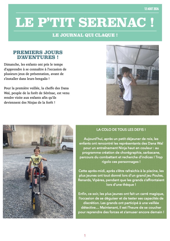 P’tit Serenac du 12 aout 2024 12 août 2024 / Bonjour à toutes et tous, vous trouverez ici le P’tit Serenac du jour ! Bonne lecture !
