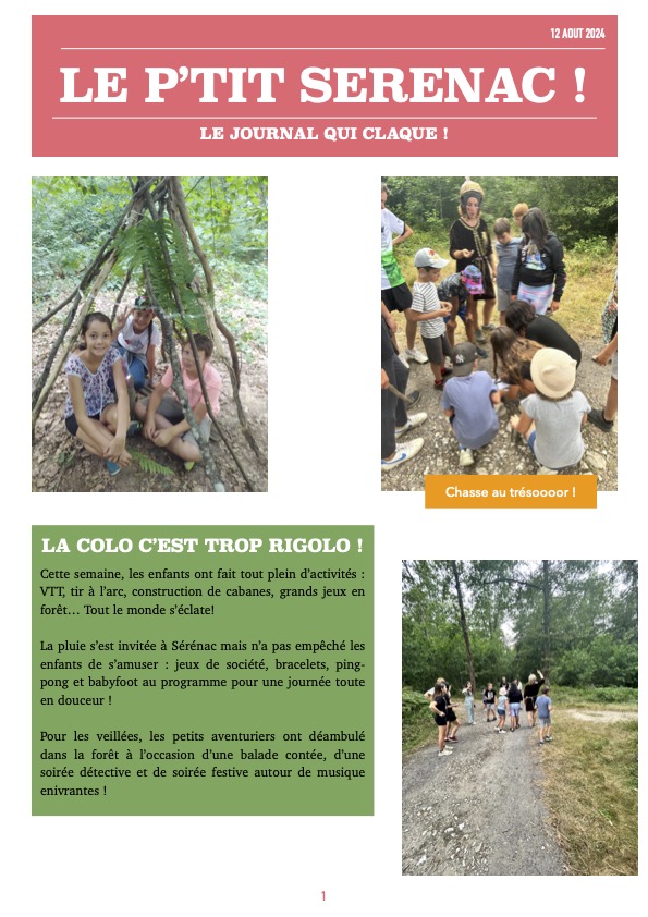 Bonjour tout le monde, vous trouverez ici le journal des aventures des enfants de la colo Aventures en forêt !