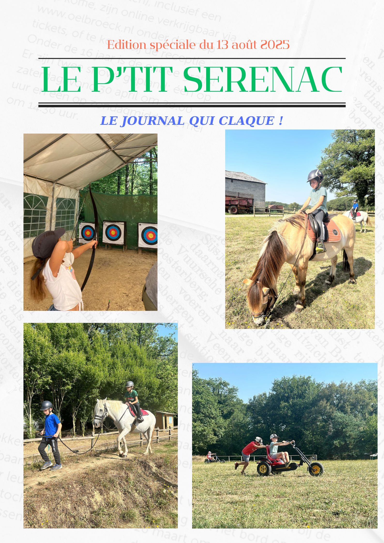 Le P’tit Sérénac du 13 août 2025 13 août 2025 / Bonjour à toutes et tous, pour continuer à suivre les aventures de nos cavaliers en herbe, vous trouverez e exclusivité mondiale sur ce blog le P’tit Sérénac du jour ! Bonne lecture !